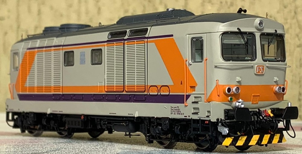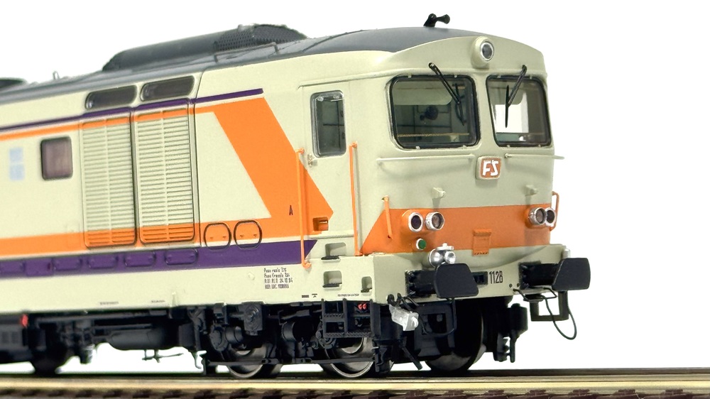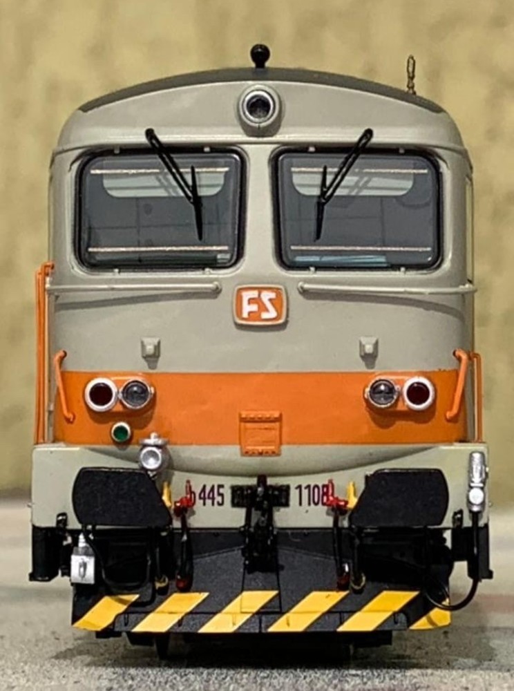 FS D 445.1128 livrea MDVC, Dep. Verona ep. V, con vomere, Potente motore a 5 poli, telaio in metallo, cassa in ABS, Arredo cabine riprodotto. Nuovo impianto elettrico con presa per decoder Plux22, speaker installato di serie, ventole sul tetto realmente funzionanti, illuminazione (interna della cabina. fanali anteriori e posteriori, terzo faro) funzionante. Tutte le funzioni luci comandabili in analogico tramite micro interruttori e in digitale con funzioni decoder. Timone di allontanamento con porta gancio a norma NEM su entrambe le testate. Frontali configurabili con pancone modellistico/vomere chiuso/vomere aperto e porta gancio